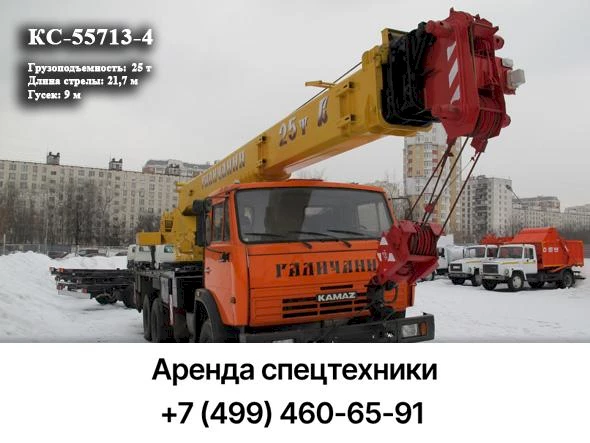 Автомобильный кран Галичанин KC-55713-4 – это мобильная крановая установка с высокой грузоподъемностью. Техника широко используется на строительных и промышленных объектах для поднятия грузов весом до 25 тонн.