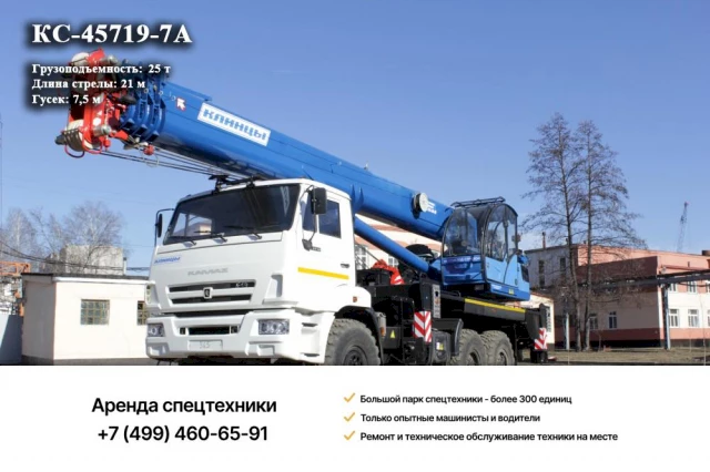 Аренда автокрана Клинцы КС-45719-7А потребуется для монтажных, погрузочных, разгрузочных работ на стройке, производственных объектах. Техника имеет высокую грузоподъемность, может работать в секторе 360º, отличается хорошей устойчивостью благодаря большой площади опорного контура.