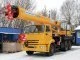 У нас можно заказать автомобильный кран с грузовой платформой КАМАЗ на три оси, две из которых ведущие. Для поднятия грузов на максимальную высоту 24 м используется трехсекционная телескопируемая стрела. Увеличить радиус ее действия можно с помощью 8,5-метрового гуська.