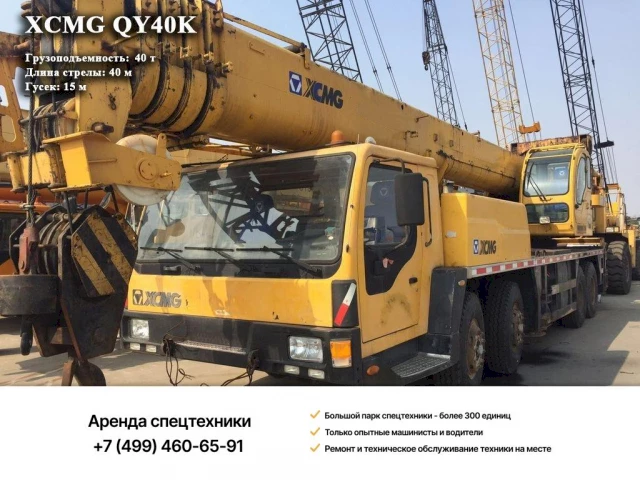 Для погрузочно-разгрузочных работ, предусматривающих поднятие веса до 40 тонн, потребуется аренда автокрана XCMG QY40K. Эта самоходная установка имеет автомобильное шасси, позволяющее быстро доставлять ее к месту эксплуатации. Также она быстро готовится к выполнению грузоподъемных процедур – достаточно выставить гидроопорные стержни и выдвинуть стрелу на требуемую высоту.