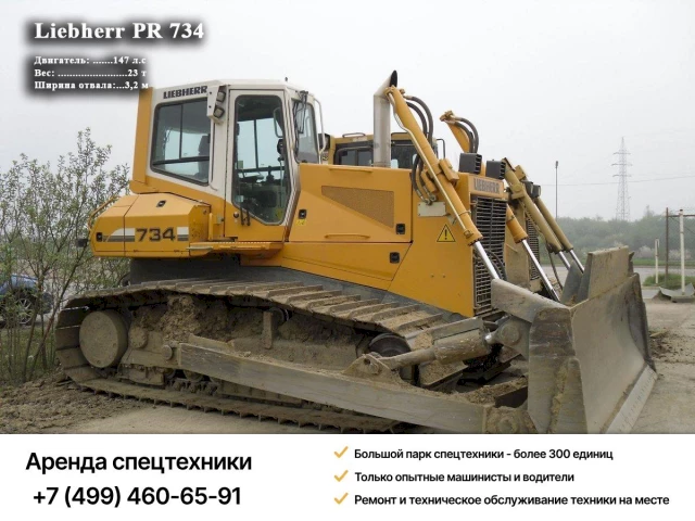 В нашей компании можно взять в аренду бульдозер Liebherr PR 734 с машинистом. Аренда бульдозера Liebherr PR 734 оформляется на срок от одной смены. У нас также имеются бульдозеры ЧТЗ Т-130, Четра Т9, ДСТ ТМ10 ГСТ10 и другая техника.