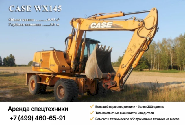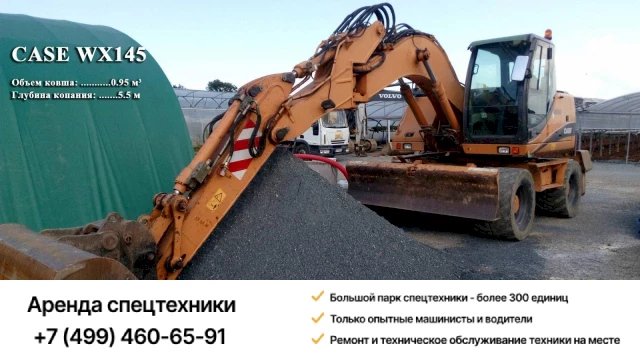 Если для землеройных работ нужен мобильный, с хорошей продуктивностью экскаватор, заказать его можно у нас. Услуги экскаватора Case WX145 предоставляются в пределах Москвы и Московской области с доставкой спецтехники к объекту заказчика, заправки ее, предоставления водителя.