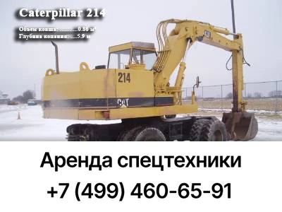 19-тонный Caterpillar 214 имеет полноприводное шасси на колесах, которое приводит в действие дизельный 103-сильный мотор Perkins 6.354.4P. Его рабочей мощности хватает, чтобы развивать максимальную скорость в 20 км/час и поддерживать функционирование гидросистемы, управляющей работой 3-секционной стрелы. Разработка грунта на максимальную глубину 5,9 м обеспечивается за счет ковша емкостью 0,86 м3.