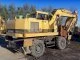 Работа 19-тонного экскаватора на колесах обеспечивается 135-сильным дизельным двигателем Caterpillar 3116 объемом 6,6 л. Он поддерживает также работу гидросистемы, управляющей односекционной стрелой. Предельная глубина копания составляет 5,02 м, а максимальная высота выгрузки – 5,71 м. В стандартной комплектации используется ковш емкостью 0,8 м3, который может меняться планировочным, траншейным, грейферным.