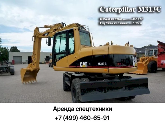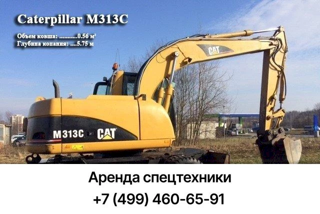Аренда экскаватора Caterpillar M313C реализуется в Москве и Московской области по предварительной оплате. Заказать технику можно минимум на одну 8-часовую смену. Аренда с экипажем и топливом будет стоить 15,2 тыс.руб. (комплектация с гидромолотом – на 10% дороже).