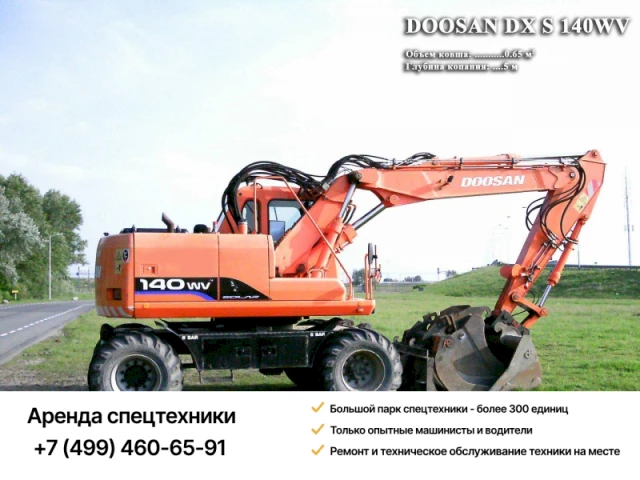 Для выполнения землеройных работ на глубину до 6 м потребуются услуги экскаватора Doosan DX140WV. Заказать его можно в нашей компании, которая поставляет спецтехнику в пределах Москвы и Московской области. Как и гусеничные экскаваторы, техника на колесах используется при строительстве дорог, прокладке трубопроводных магистралей, подготовке местности под строительство.