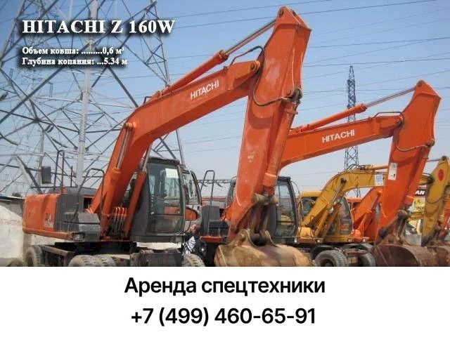 Заказать услуги экскаватора Hitachi EX 160W в Москве и Московской области можно в нашей компании. Мы предлагаем подготовленную к работе технику, которая сдается вместе с экипажем и топливом.