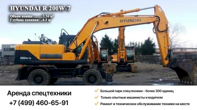 Мы предлагаем взять в аренду колесный экскаватор с ковшом Hyundai R200W-7. Он разработан для эксплуатации в сложных условиях, отличается высокой производительностью.