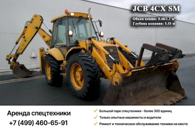 В нашей компании вы можете заказать услуги экскаватора JCB 4CX SM как на одну смену, так и на необходимый вам срок. Мы предлагаем также другие виды специальной техники и оборудования – компрессоры, генераторы, буровые установки и т. п.