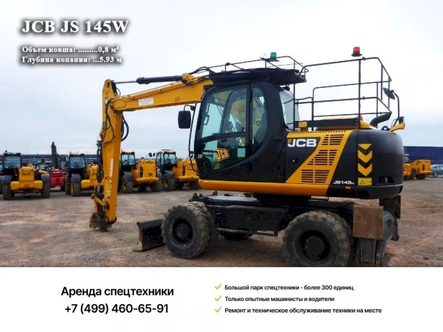 Колесный экскаватор JCB JS 145W относится к дорожно-строительной технике, используемой для копания грунтов разной твердости, выполнения погрузочно-разгрузочных работ, разравнивания местности. Учитывая высокую стоимость колесных и гусеничных экскаваторов, их выгодно брать напрокат.