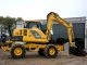 11,2-тонная землеройная техника приводится в действие от дизельного мотора мощностью 65 л.с. Двигатель способствует стабильной работе гидросистемы, которой управляется рабочая стрела, оснащенная ковшом на 0,56 м3. Максимальная глубина копания этой модели на колесах составляет 6,3 м.