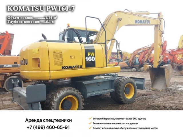 Заказать услуги этой техники можно у нас. Аренда экскаватора Komatsu PW 160-7 предоставляется в пределах Москвы и Московской области на период от одного 8-часового рабочего дня.