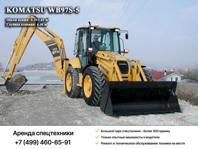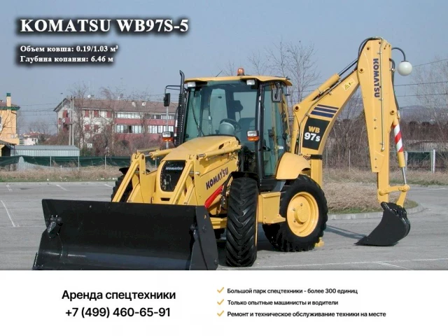 Аренда экскаватора Komatsu WB97S-5 заключается в предоставлении заказчику техники на необходимый срок с экипажем и топливом.