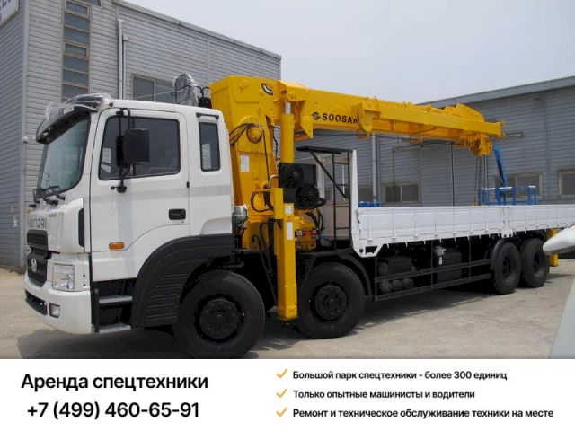 Предлагаем в аренду кран-манипулятор SOOSAN SCS334 на бортовой платформе Hyndai HD 78. КМУ оснащена беспроводной системой защиты от перегрузок. Сенсорный дисплей позволяет оператору полностью контролировать работу установки SCS334. Конструкция стрелы отличается высокой прочностью при небольшом весе. Ее грузоподъемность 3,2 тонны. Краны Hyndai HD 78 лидируют среди ассортимента среднетоннажной спецтехники по надежности и невысокой стоимости. Арендованные манипуляторы позволяют с небольшими затратами выполнять строительно-монтажные и ремонтные работы. Габаритные размеры КМУ позволяют работать в стесненных условиях городской застройки.