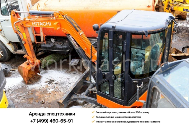 Наша компания предлагает взять в аренду мини-экскаватор Hitachi ZX35U. В стоимость включены расходы на топливо и услуги оператора. Минимальный заказ – на одну рабочую смену, составляющую 8 часов. Доставка до места работ производится за отдельную плату. Вы можете уточнить детали и оформить заказ, используя специальную форму на сайте или позвонив по телефону. В зависимости от нюансов заказа возможны скидки.
