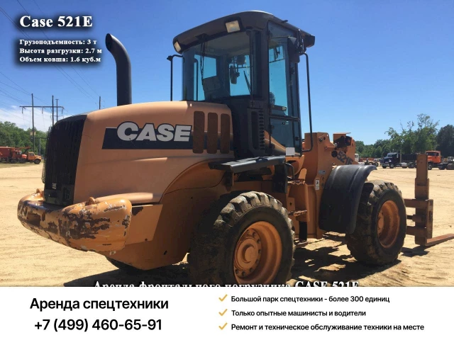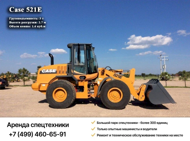 Фронтальный погрузчик Case 521E – универсальная машина повышенной маневренности. Используется для механизации работ связанных с погрузкой и разгрузкой материалов различных фракций, строительством разных объектов. Широко эксплуатируется в гражданском и дорожном строительстве, сельском хозяйстве.