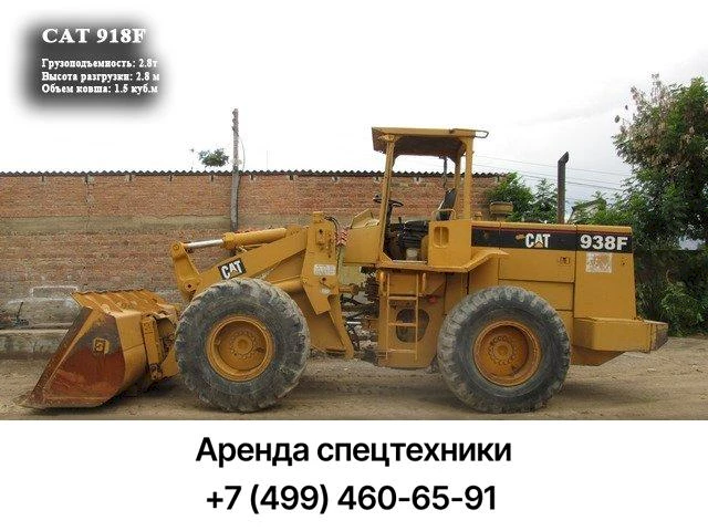 Сфера применения фронтальных погрузчиков Caterpillar 918F — карьеры по добыче песка, гравия, строительные площадки. Масса погрузчика в снаряженном состоянии — 8 тонн. Штатное оснащение — ковш объемом 1,5 м3. Погрузчик может самостоятельно формировать бурты сыпучего материала, захватывать их ковшом и выгружать на высоте 2,8 м, поднимая за один прием до 2,8 тонн груза. Это позволяет работать с самосвалами, тракторными прицепами. Привод погрузчика — на все колеса одинакового диаметра. Кинематическая схема гарантирует высокую проходимость, управляемость и возможность перемещения с поднятым загруженным ковшом. Четыре передачи вперед и три назад позволяют перемещаться площадкой челночным способом, без разворота, что повышает эффективность использования рабочего времени. Управление подъемного механизма осуществляется двумя джойстиками, отличается точностью и четкостью выполняемых операций.