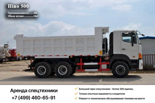 Аренда самосвала Hino 500 включает предварительную оплату за эксплуатацию и доставку к месту работы. Самосвал Hino 500 в аренду оформляется официальным договором.