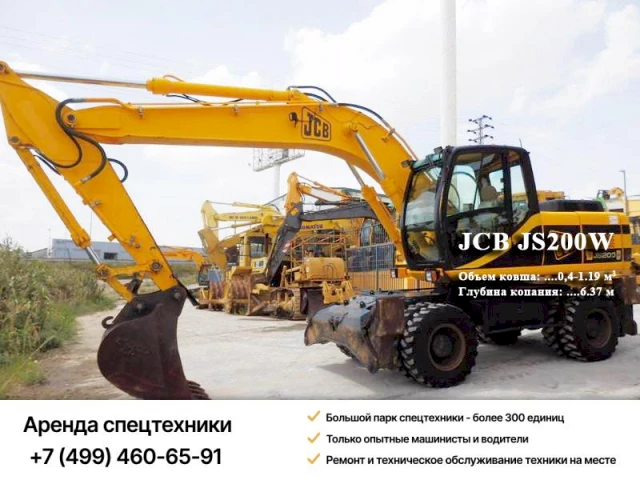 Для организаций, которые не владеют собственной спецтехникой, у нас можно заказать услуги экскаватора JCB JS 200W. Мы поставляем спецмашины в пределах Москвы и Московской области на срок от одной 8-часовой смены.